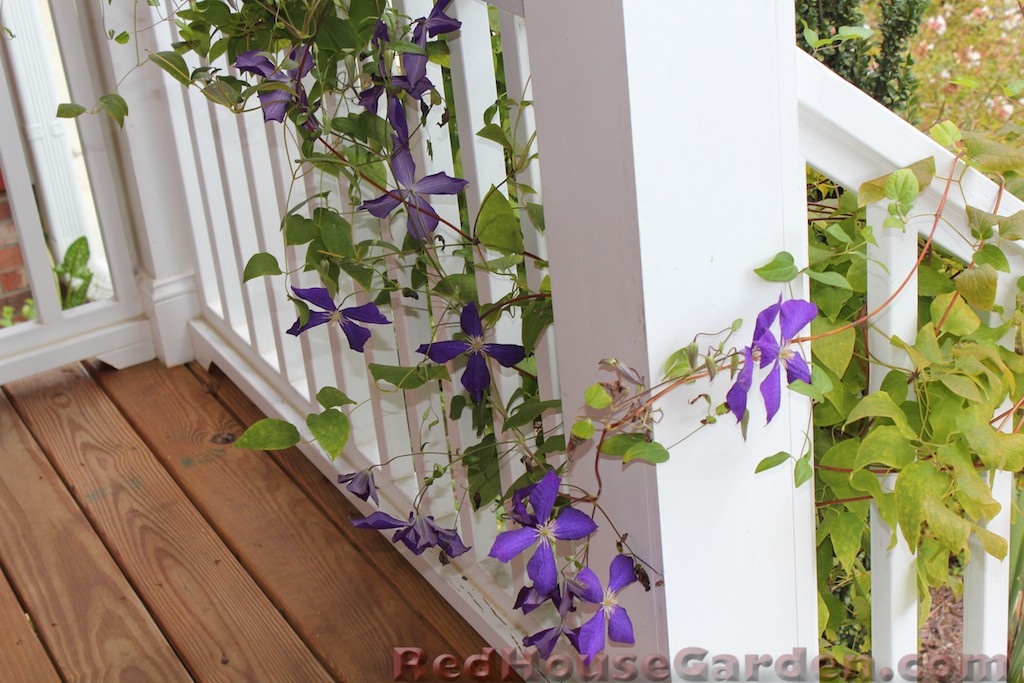 | Clematis 'Rooguchi' has been blooming all summer. |